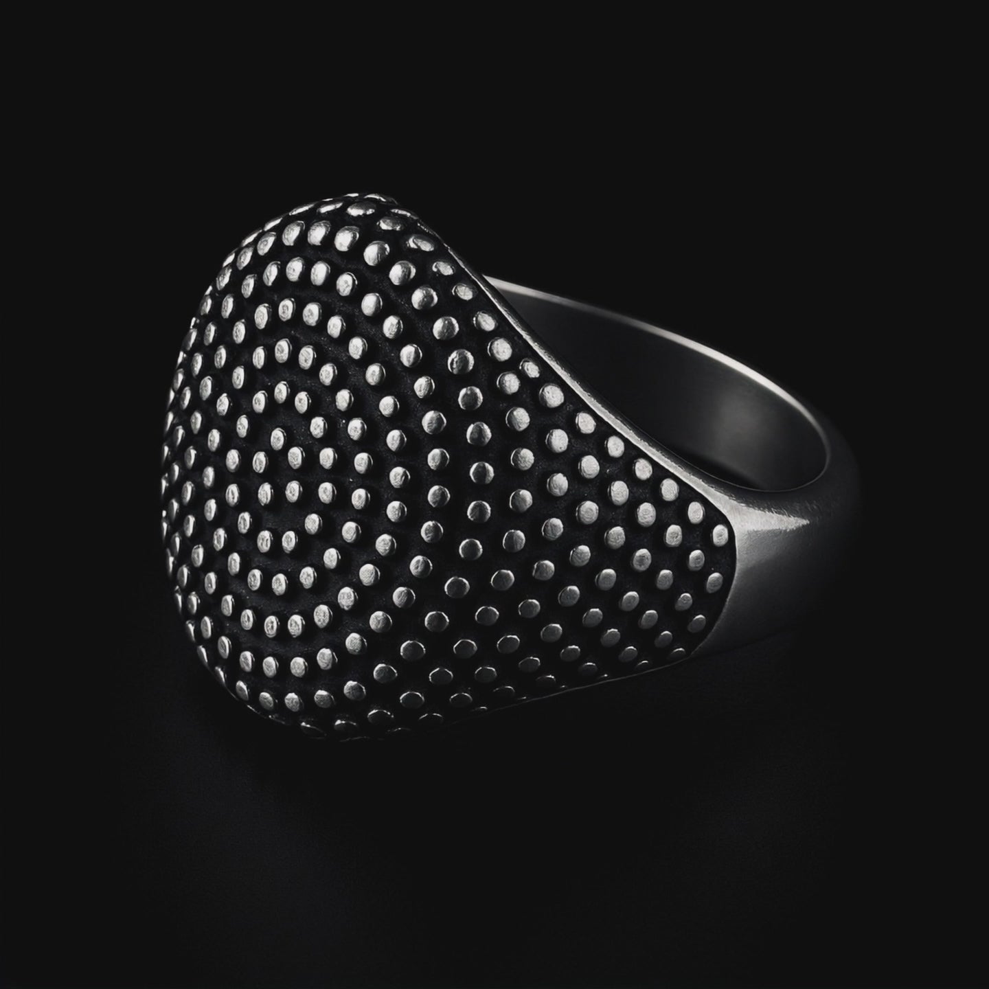 Tough, raw, and built to hold under pressure, the Stud Ring locks survival into every mark. No polish, no weakness—just steel pressed for impact.