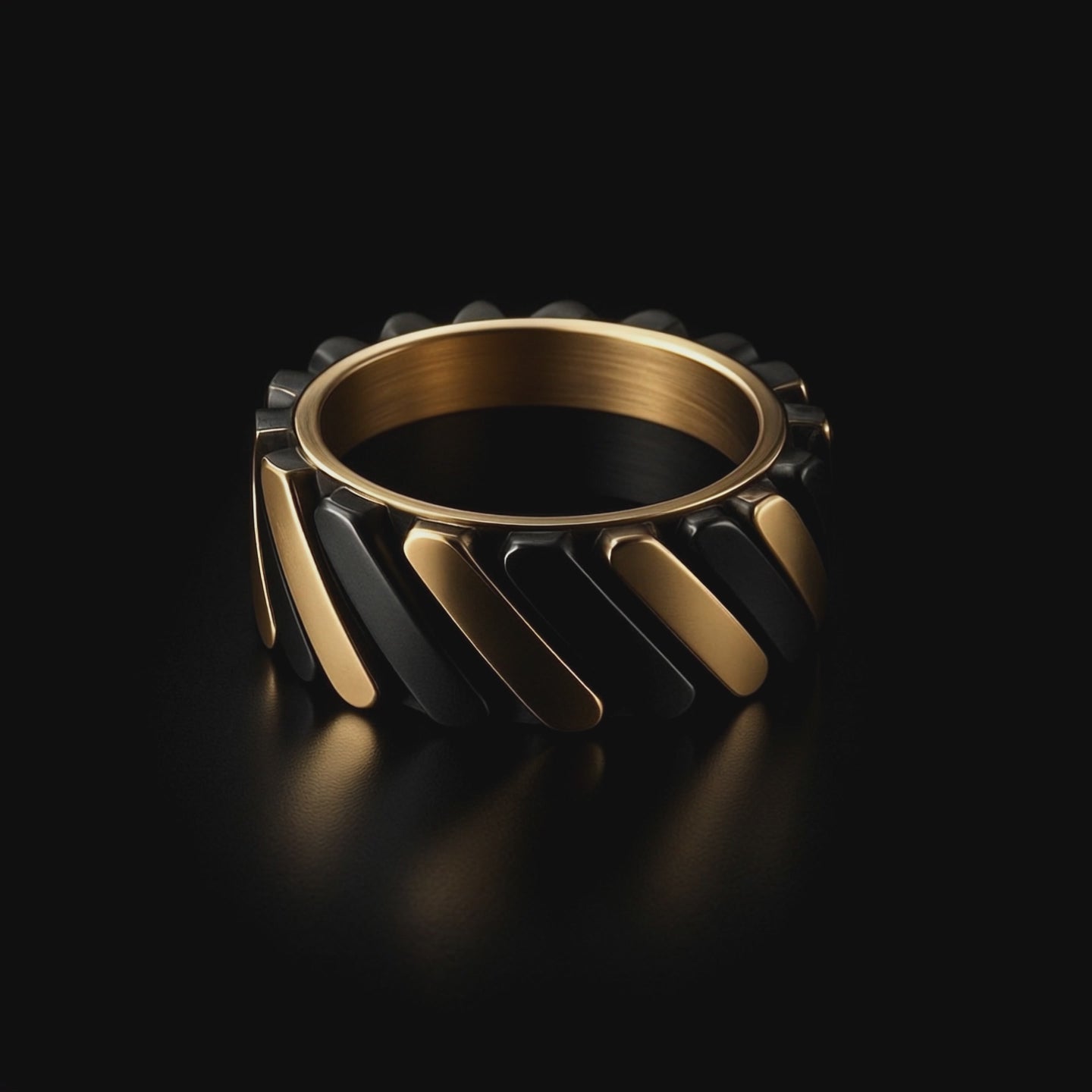 Engineered for pure force, the Overdrive Ring locks chaos into constant motion. Gold and black fuse into one relentless surge—built to tear through anything that stands still.